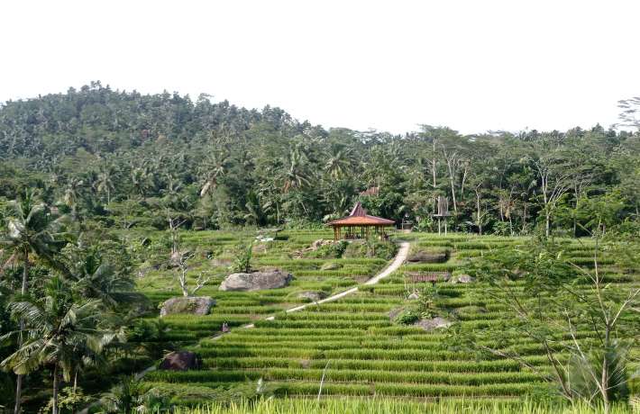 Saung Ranggon atau yang sekarang dikenal dengan sebutan Terasering Bojongsari menawarkan keindahan view pesawahan terasering dan batu-batuan alam yang berukuran besar yang dapat ditumbuhi oleh tanaman padi.