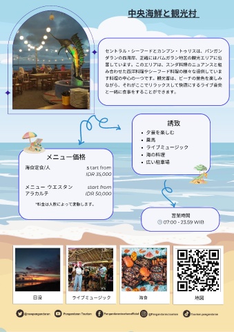 す料理の中⼼の⼀つです。観光客は、ビーチの景⾊を楽しみ