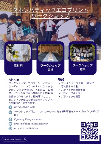 ワークショップ料⾦:: IDR 100,000/⼈ 持ち帰り可能なトートバッグ・メディア