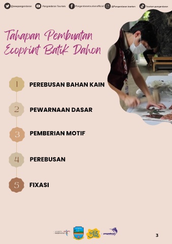 Tahapan Pembuatan Ecoprint Batik Dahon 1 PEREBUSAN BAHAN KAIN 2 PEWARNAAN DASAR 3 PEMBERIAN MOTIF 4 PEREBUSAN 5 FIXASI 3