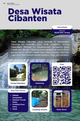 070 Desa Wisata Desa Wisata Cibanten Desa Wisata Cibanten Paket Wisata Mulai dari Rp30.000 /orang Maps Curug Ciparakan Golewang Daya Tarik Lainnya Makam Kesepuhan Edukasi Ternak Madu Pudding Daun Kelor Opak Camping Ground Madu Murni