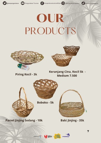 OUR PRODUCTS Keranjang Cina, Kecil 5k - Piring Kecil - 3k Medium 7.500 Boboko - 5k Parsel Jinjing Sedang - 10k Baki Jinjing - 35k 7